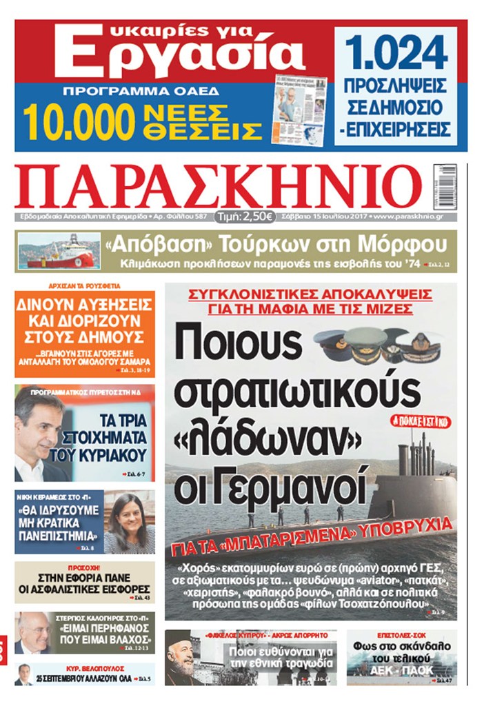 Μη χάσετε με το «ΠΑΡΑΣΚΗΝΙΟ» που κυκλοφορεί το Σάββατο 15 Ιουλίου, με μεγάλες αποκαλύψεις και το ένθετο «Ευκαιρίες για Εργασία».