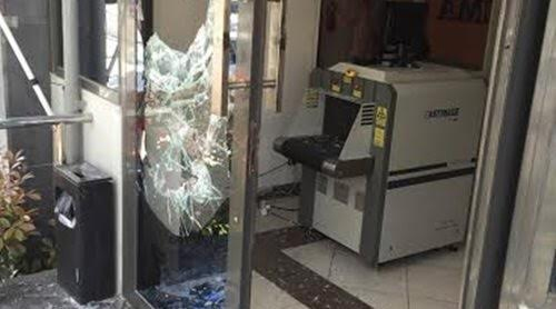 Άγνωστοι πέταξαν πέτρες στην πρόσοψη του κτηρίου και προκάλεσαν φθορές με βαριοπούλες στην κεντρική τζαμαρία και σε δύο αυτοκίνητα, πριν τραπούν σε φυγή.