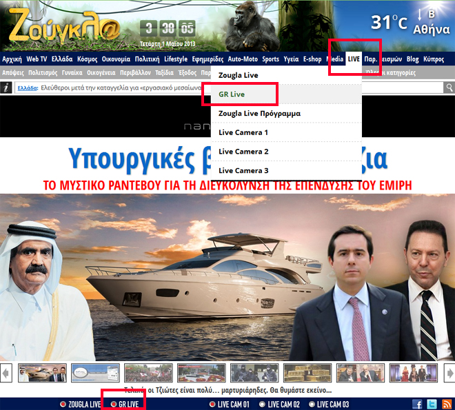 Πατήστε στην αρχική σελίδα στο εικονίδιο LIVE και GR LIVE.