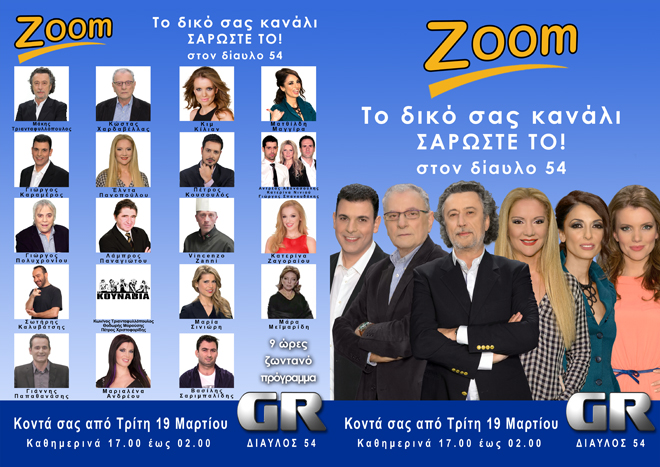 Για να έχετε όμως -όσοι διαμένετε στο Λεκανοπέδιο της Αττικής- και πάλι εικόνα από το ΖΟΟΜ, θα πρέπει να συντονίσετε τις τηλεοράσεις σας ή τους αποκωδικοποιητές. Για όποιον γνωρίζει, η διαδικασία είναι εύκολη: στις επιλογές της συσκευής του για χειροκίνητο συντονισμό, πηγαίνει στον δίαυλο 54 και κάνει αναζήτηση.