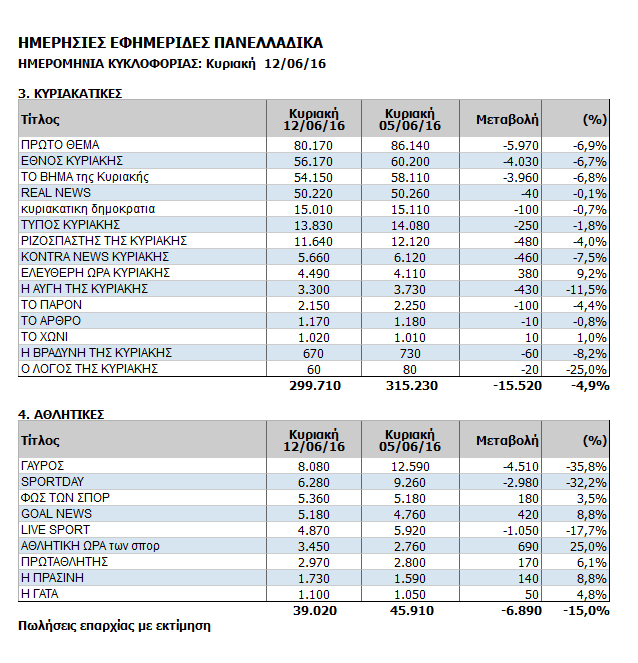 Κανένα ανάχωμα δεν υπάρχει στην πτώση της κυκλοφορίας των εφημερίδων. Οι προσφορές είναι αυτές που διατηρούν «ζωντανές» τις εφημερίδες και τον κλάδο...