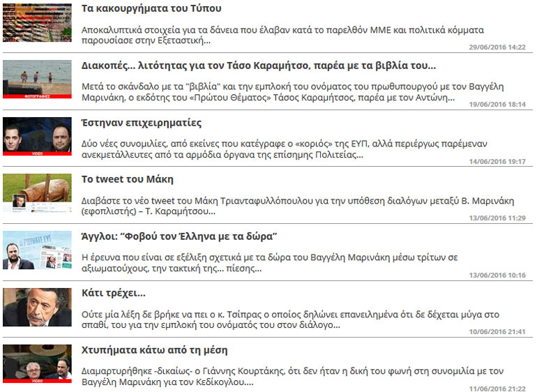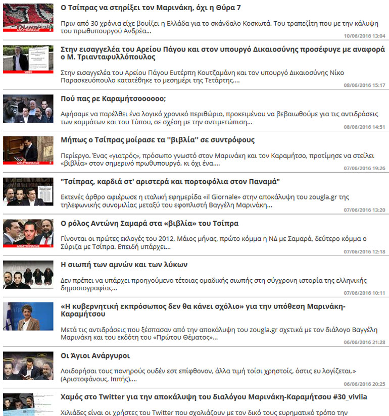 Άλλωστε, με την τηλεφωνική συνομιλία ενός εκ των ιδιοκτητών της εφημερίδας, του Τάσου Καραμήτσου, με τον Βαγγέλη Μαρινάκη και τα περίφημα «βιβλία» που θα έστελναν στον Τσίπρα που αποκαλύψαμε μέσα από το zougla.gr έγινε φανερή και στους πλέον δύσπιστους η κολεγιά με τον ιδιοκτήτη του Ολυμπιακού.