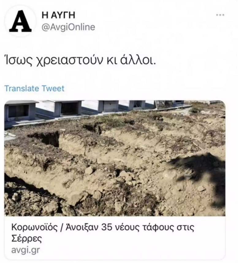 Αντιδράσεις προκάλεσε ένα δημοσίευμα στην ηλεκτρονική έκδοση της εφημερίδας «Αυγή» που υποστήριζε ότι «ανοίγουν νέους τάφους στις Σέρρες» και το σχόλιο «Ίσως χρειαστούν κι άλλοι» που το συνόδευε.