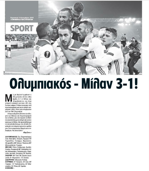 Η εφημερίδα γνωστοποίησε την απάντηση του επίσημου Ολυμπιακού στο αίτημά της, που έχει ως εξής: «Λόγω αυξημένης ζήτησης και κάλυψης των θέσεων στα δημοσιογραφικά του γηπέδου μας, δεν είμαστε σε θέση να ικανοποιήσουμε το αίτημά σας για τον αγώνα με τη Μίλαν. Θα προσπαθήσουμε να σας φιλοξενήσουμε στο γήπεδο Καραϊσκάκη σε επόμενο αγώνα της ομάδας μας. Σας ευχαριστούμε θερμά για το ενδιαφέρον. Να είστε καλά!».