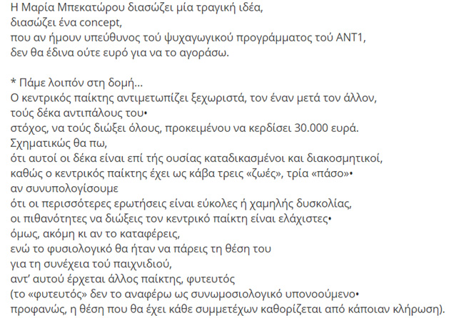 μα και τα τηλεοπτικά στελέχη που πάνε και αγοράζουν την εκάστοτε ιδέα,