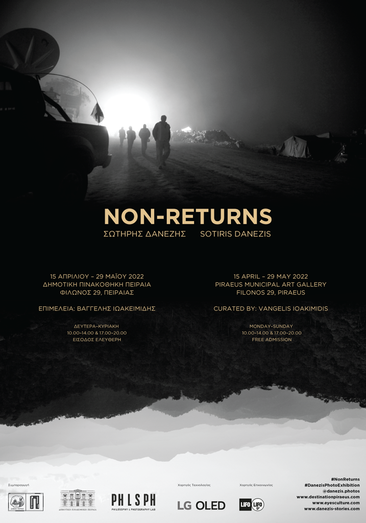 Η έκθεση φωτογραφίας και νέων μέσων Non-Returns,την οποία εγκαινίασε ο Δήμαρχος Πειραιά Γιάννης Μώραλης στις 15 Απριλίου, ολοκληρώνεται αυτή την Κυριακή, 29 Μαΐου. Η Δημοτική Πινακοθήκη Πειραιά, στην οδό Φίλωνος 29,θα είναι ανοιχτή από τις 10.00 έως τις 14.00 και από τις 18.00 έως στις 21.00.