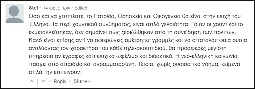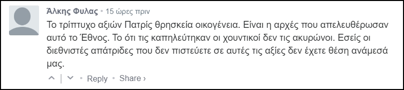 σε όλους εσάς τούς επιδειξίες τού «Πατρίς-Θρησκεία-Οικογένεια»,