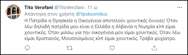 εγώ είμαι ο διεθνιστής άπατρις, εσύ διασύρεις την Ελληνική Γλώσσα.