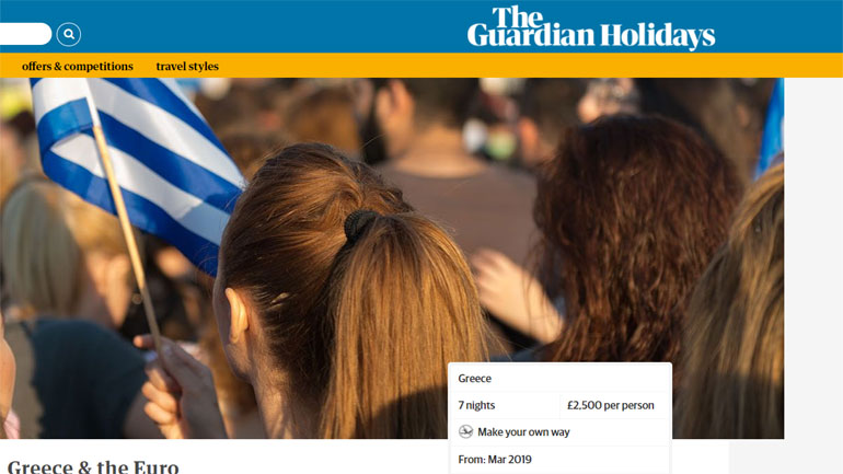 Ο βρετανικός Guardian πρωοτυπεί. Για πρώτη φορά υιοθετεί μια φόρμουλα οργανωμένου-βιωματικού τουρισμού με ένα πακέτο που φθάνει τα 3.000 ευρώ ανά άτομο με το οποίο δεσμεύεται να ξεναγήσει τους αναγνώστες της εφημερίδες στην Ελλάδα της κρίσης και των προσφυγικών ροών.