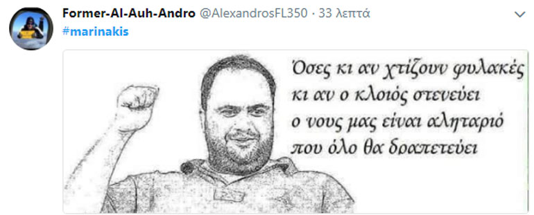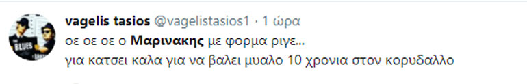 Οι Twitterάδες επιστράτευσαν το χιούμορ τους και ανήρτησαν στιχάκια τα οποία αφιερώνουν στον Ευάγγελο Μαρινάκη.