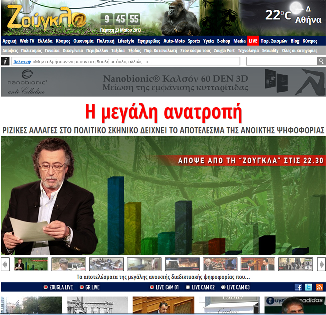 Με εκπομπές στη ZOUGLA TV, το ζωντανό δελτίο ειδήσεων, προσφέροντας παράλληλα στον αναγνώστη τον δικό του ελεύθερο δίαυλο επικοινωνίας, το zougla blog και το chatroom του WEB TV.