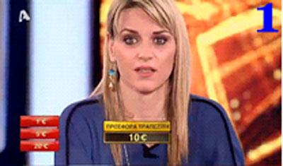 Το παιχνίδι κυλούσε, η παίκτριά μας εφίμωνε κάθε προσπάθεια της Τύχης να συνομιλήσουν και να βρουν ένα σημείο επαφής, ώσπου φτάσαμε στο «τριτοκοσμικό» σημείο να έχουν μείνει το 1, τα 5 και τα 20 ευρά (φωτό 1), και η προσφορά του τραπεζίτη να είναι 10 ευρά.