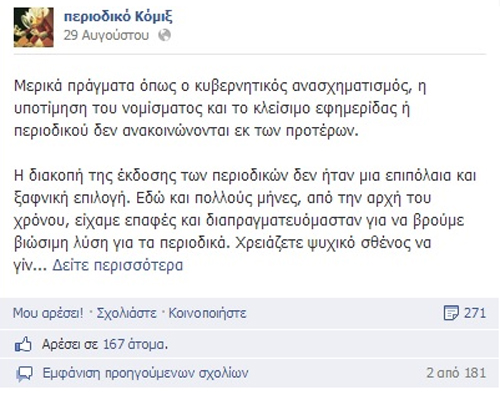 Δεκάδες χρήστης των social media γράφουν μηνύματα που εκφράζουν βαθύτατη λύπη για το περιοδικό που γέμισε τις ώρες των παιδικών τους χρόνων, ενώ πολλοί αναρωτιούνται «γιατί;» ζητώντας μάλιστα να συνεχιστεί η έκδοση των περιοδικών κι ας αυξηθεί η τιμή τους!