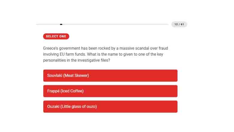 Μια από τις ερωτήσεις του κουίζ αφορούσε την ελληνική επικαιρότητα.