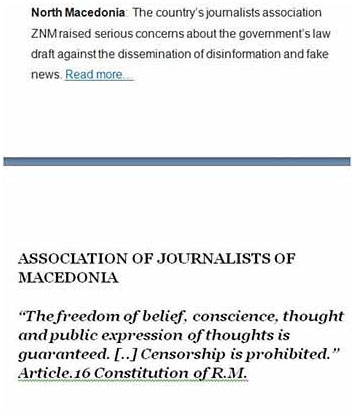 Επισκέφθηκα λοιπόν την ιστοσελίδα της Ένωσης Συντακτών Βόρειας Μακεδονίας, όπως μου πρότεινε το ΕΚΕΤ και συνάντησα την «Ένωση Συντακτών ‘Μακεδονίας’».