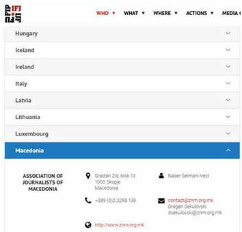 Κατόπιν, επισκέφθηκα την ιστοσελίδα της ΔΙΕΘΝΟΥΣ ΟΜΟΣΠΟΝΔΙΑΣ ΔΗΜΟΣΙΟΓΡΑΦΩΝ, την «IFJ» και ανέτρεξα να δω ποια είναι τα μέλη της. H εικόνα μιλάει από μόνη της.