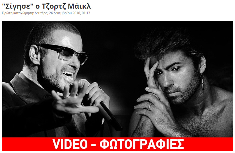 Ο αιφνίδιος θάνατος, ανήμερα των Χριστουγέννων, του διάσημου pop τραγουδιστή, Τζορτζ Μάικλ, σε ηλικία 53 ετών.