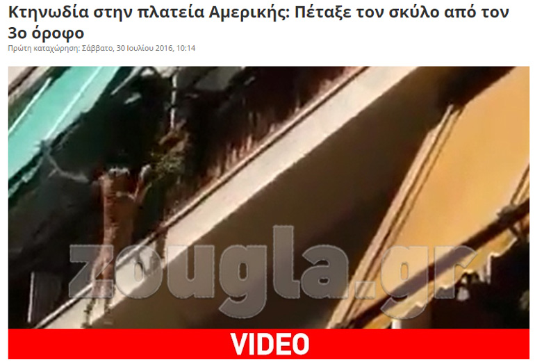 4. Κτηνωδία στην πλατεία Αμερικής: Πέταξε τον σκύλο από τον 3ο όροφο