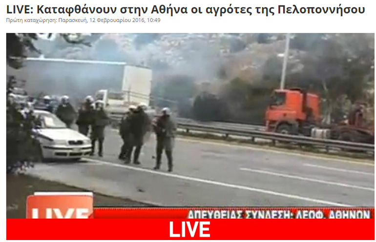 5. Ζωντανή κάλυψη της «απόβασης» των αγροτών στην Αθήνα