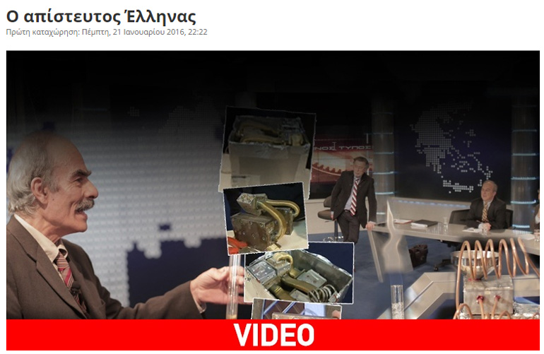Η μεγάλη εφεύρεση του Πέτρου Ζωγράφου, που παράγει ηλεκτρικό ρεύμα από νερό, παρουσιάστηκε σε σειρά εκπομπών και ρεπορτάζ του zougla.gr.