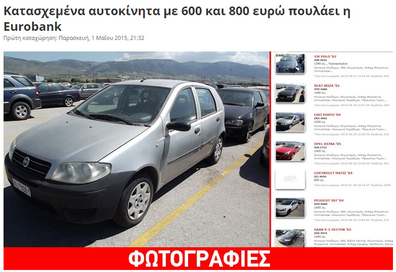 Τα κατασχεμένα αυτοκίνητα που διέθετε προς πώληση το τμήμα μεταχειρισμένων – κατασχεμένων αυτοκινήτων της Eurobank, με τιμή που ξεκινούσε από 600 ευρώ.