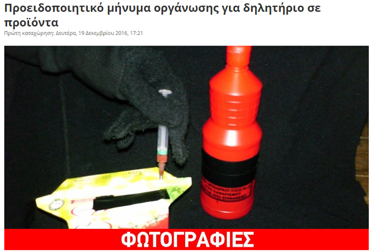 12. Προειδοποιητικό μήνυμα οργάνωσης για δηλητήριο σε προϊόντα