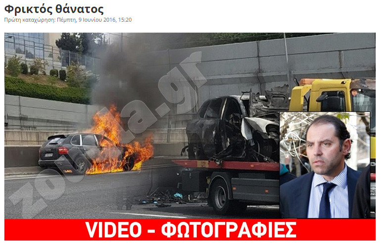 Το τραγικό δυστύχημα στην Αττική Οδό με τον θάνατο του εκδότη της εφημερίδας «Ακρόπολις», Παναγιώτη Μαυρίκου, με το όχημά του να πιάνει φωτιά εν κινήσει.