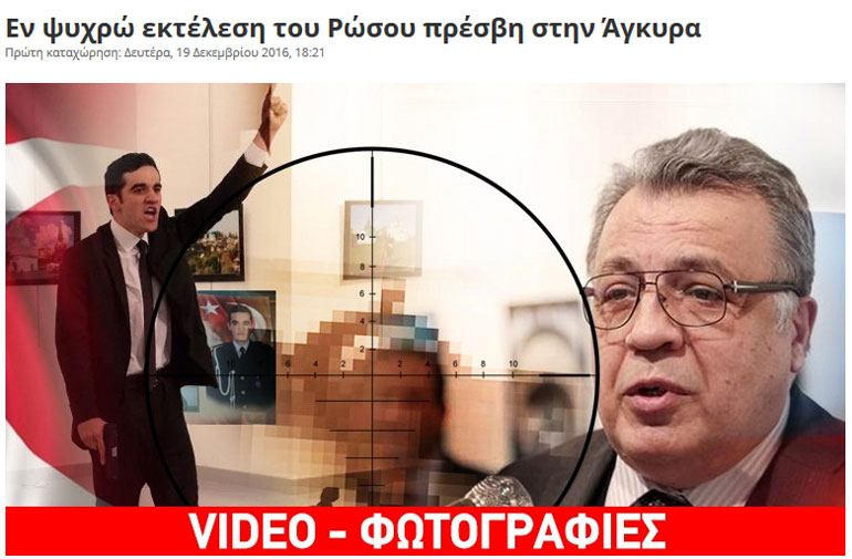 Η θανάσιμη επίθεση από νεαρό ισλαμιστή αστυνομικό που δέχτηκε ο Ρώσος πρέσβης στην Άγκυρα, κατά τη διάρκεια εκδήλωσης, λίγο πριν εκφωνήσει την ομιλία του, στις 19 Δεκεμβρίου.