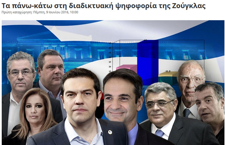 Η διαδικτυακή ψηφοφορία του zougla.gr που διεξήχθη από τις 31 Μαΐου έως τις 7 Ιουνίου και κατέδειξε την ελεύθερη πτώση στις προτιμήσεις των πολιτών του κυβερνώντος κόμματος…
