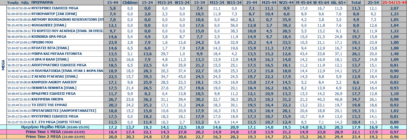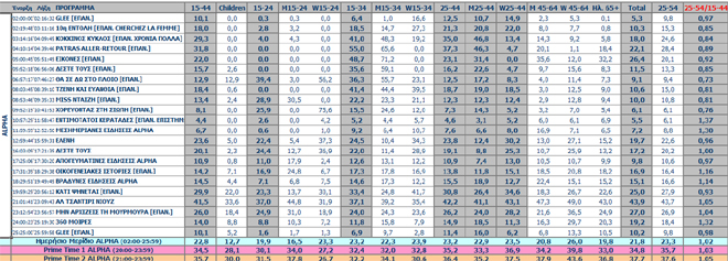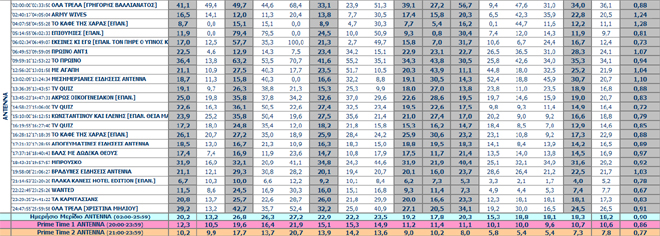 Δείτε τους αναλυτικούς πίνακες με τα μερίδια τηλεθέασης της AGB για την Tρίτη....