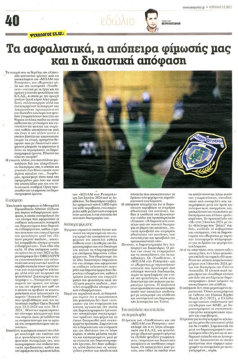 ΕΛΕΥΘΕΡΟΣ ΤΥΠΟΣ ΤΗΣ ΚΥΡΙΑΚΗΣ