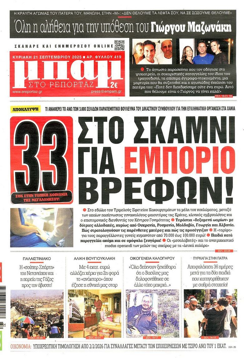 Διαβάστε στο zougla.gr τα πρωτοσέλιδα και τα οπισθόφυλλα των κυριακάτικων εφημερίδων…