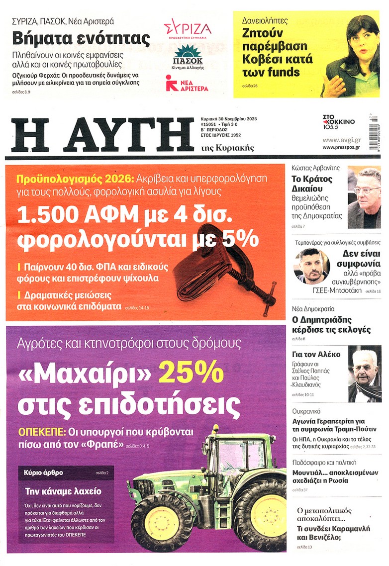 Διαβάστε στο zougla.gr τα πρωτοσέλιδα και τα οπισθόφυλλα των κυριακάτικων εφημερίδων.