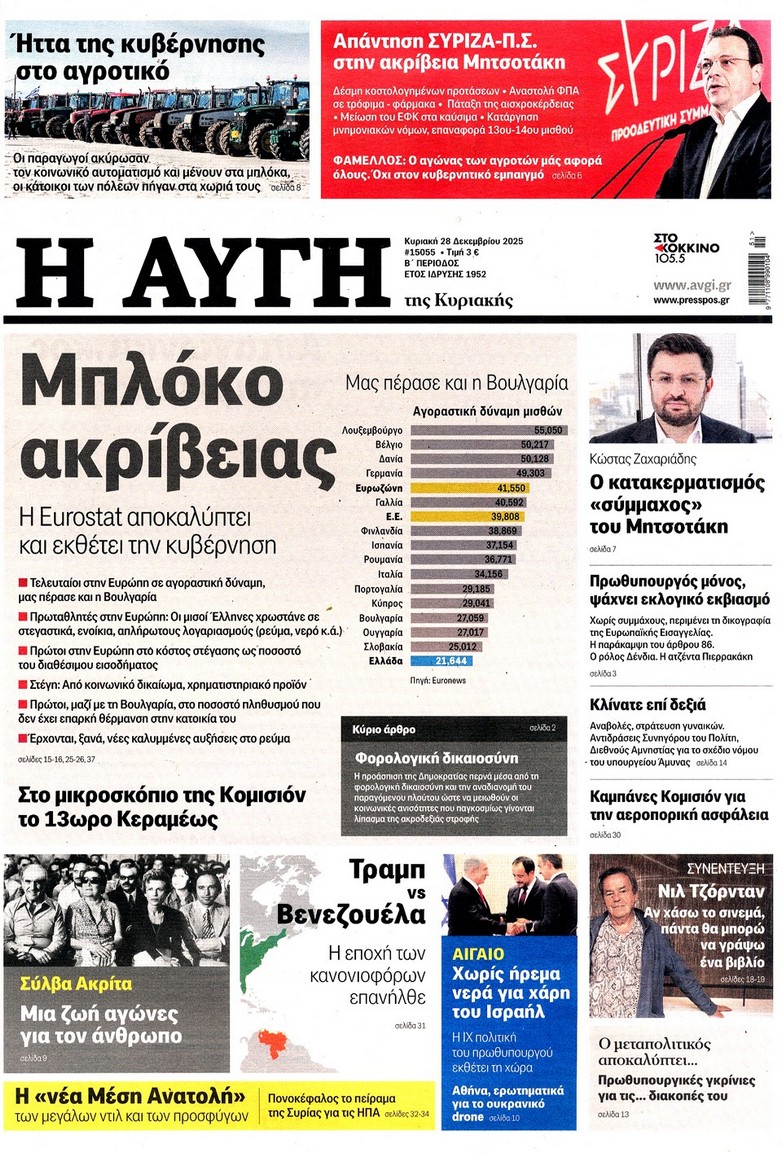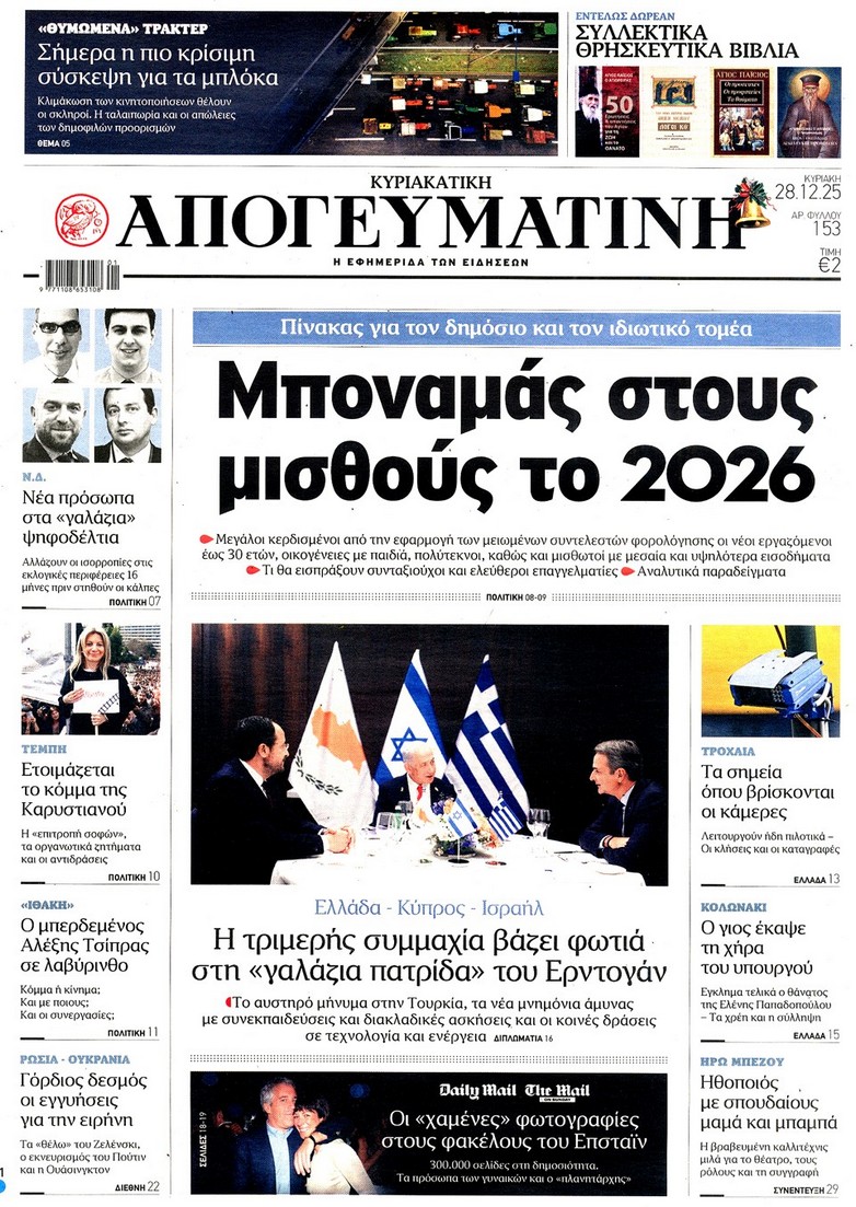 Διαβάστε στο zougla.gr τα πρωτοσέλιδα και τα οπισθόφυλλα των κυριακάτικων εφημερίδων.