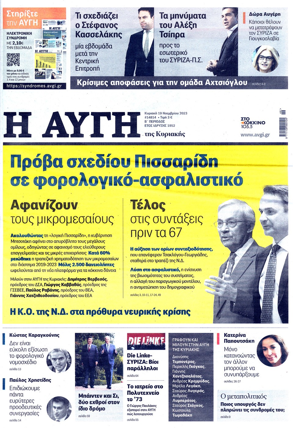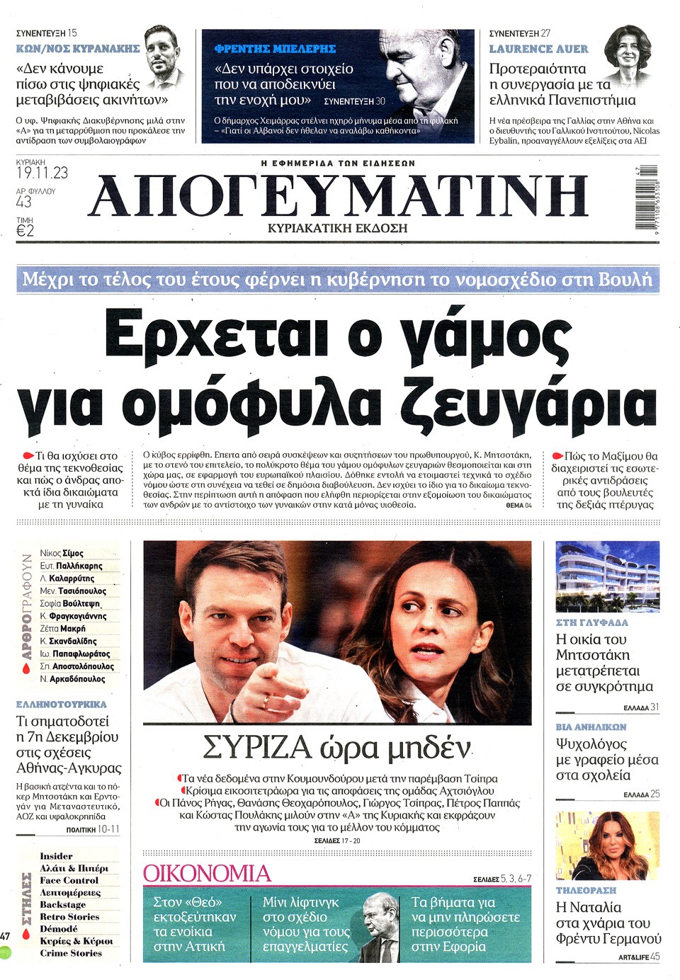 Διαβάστε στο zougla.gr τα πρωτοσέλιδα και τα οπισθόφυλλα των κυριακάτικων εφημερίδων.