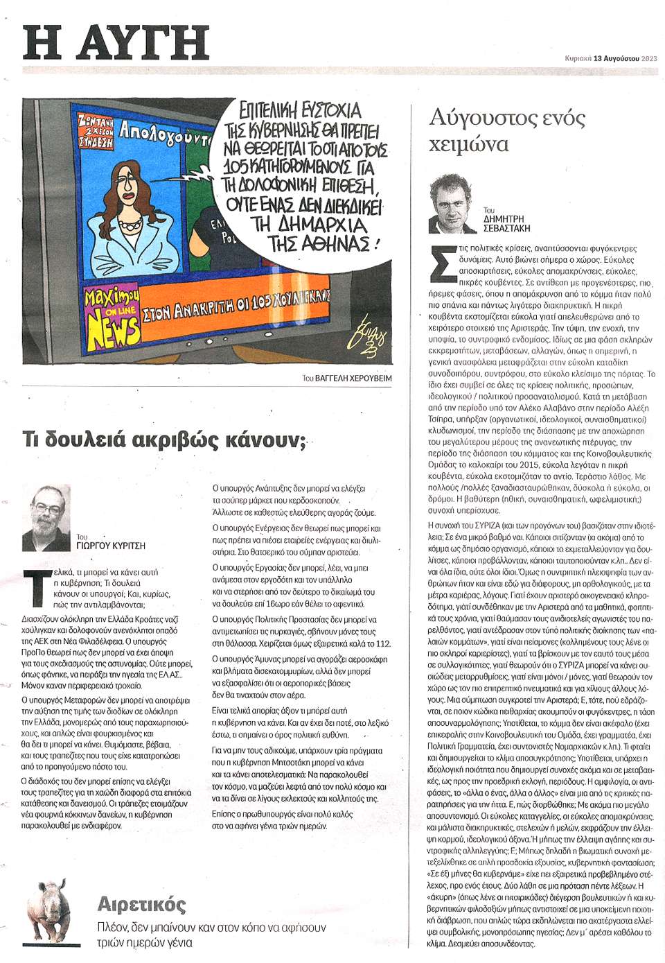 Media Τα πρωτοσέλιδα και τα οπισθόφυλλα των κυριακάτικων εφημερίδων Διαβάστε στο zougla.gr τα πρωτοσέλιδα και τα οπισθόφυλλα των εφημερίδων της Κυριακής… Γεράσιμος Λεβαντίνος 12.08.2023 | 18:22 UPD:12.08.2023, 18:35 H Καθημερινή Πρώτο Θέμα Real News Το Βήμα Ελεύθερος Τύπος της Κυριακής Η Αυγή της Κυριακής Το Παρόν Κontra Documento Κυριακάτικη Δημοκρατία ΜΠΑΜ της Κυριακής ΜΑΚΕΔΟΝΙΑ ΤΗΣ ΚΥΡΙΑΚΗΣ Απογευματινή Δικέφαλος ΔΙΑΒΑΣΤΕ ΠΕΡΙΣΣΟΤΕΡΑ: #κυριακάτικες εφημερίδες #οπισθόφυλλα #πρωτοσέλιδα
