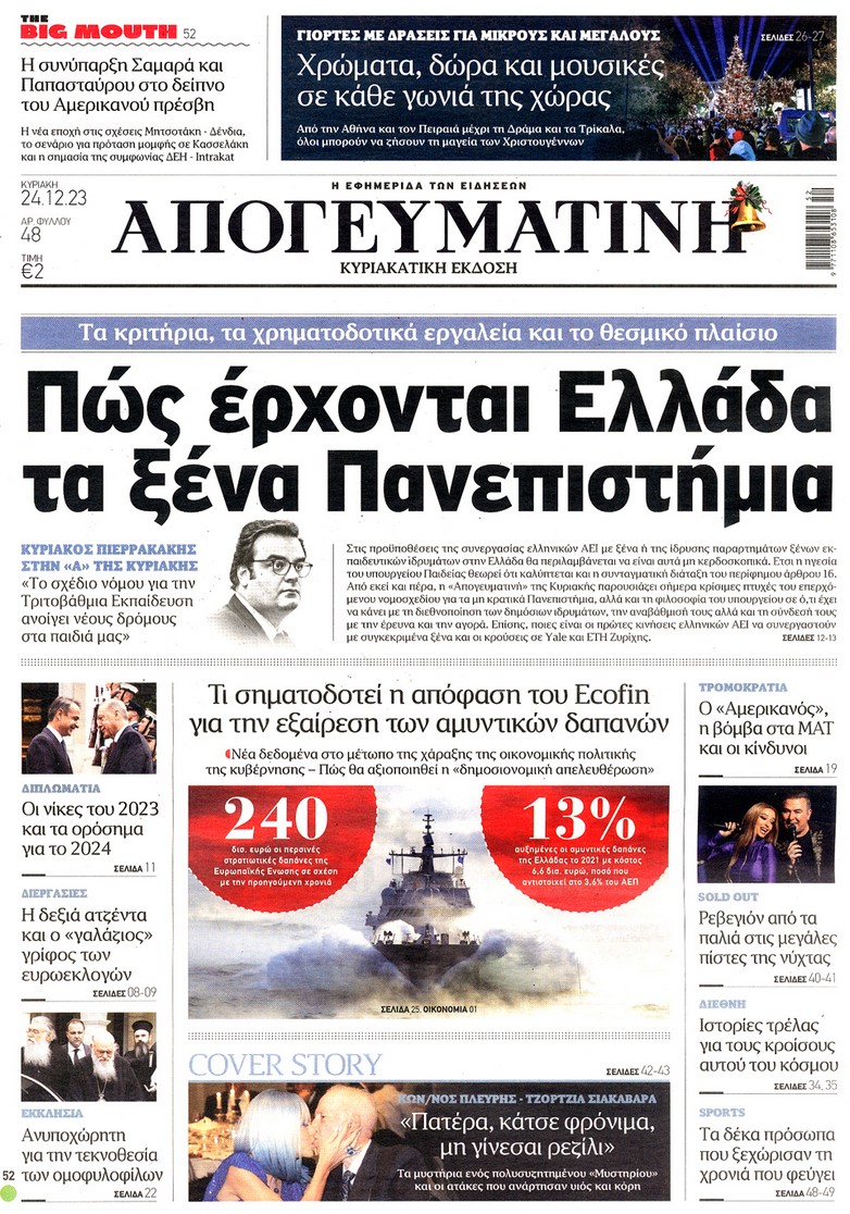 Διαβάστε στο zougla.gr τα πρωτοσέλιδα και τα οπισθόφυλλα των κυριακάτικων εφημερίδων.