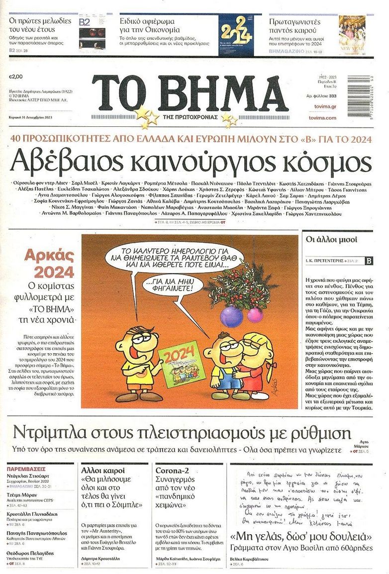 Διαβάστε στο zougla.gr τα πρωτοσέλιδα και τα οπισθόφυλλα των κυριακάτικων εφημερίδων.