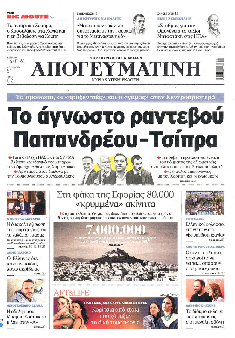 Διαβάστε στο zougla.gr τα πρωτοσέλιδα και τα οπισθόφυλλα των κυριακάτικων εφημερίδων.