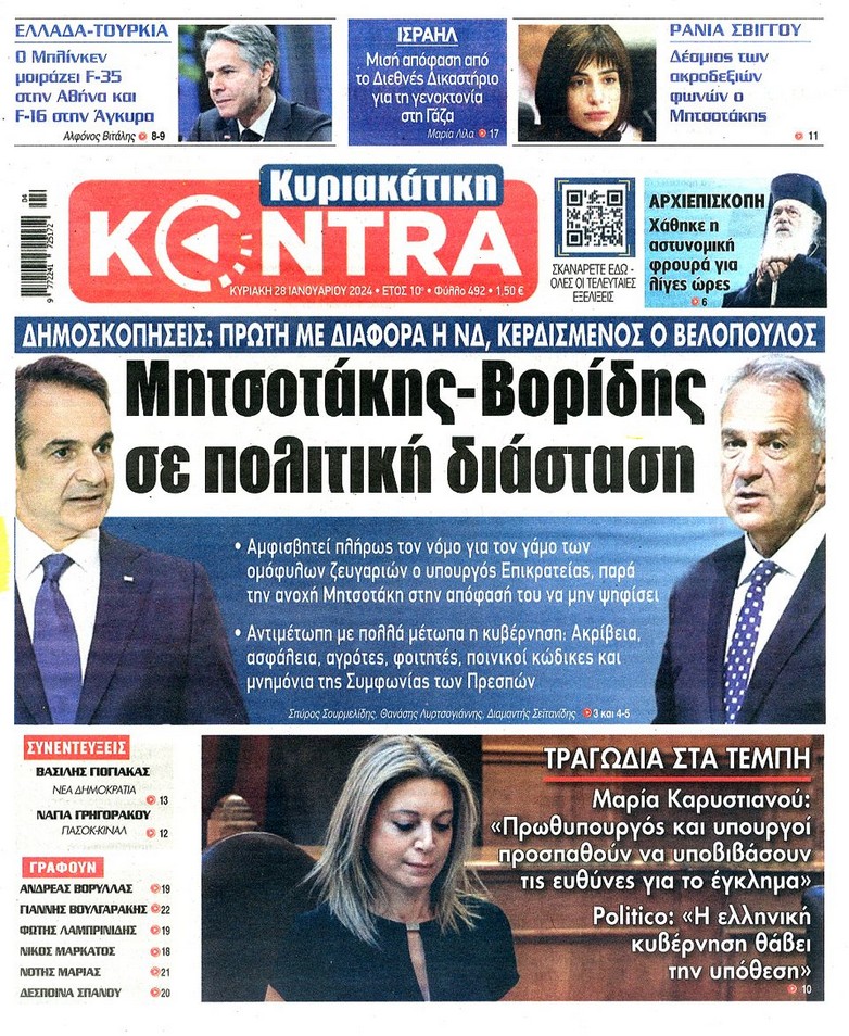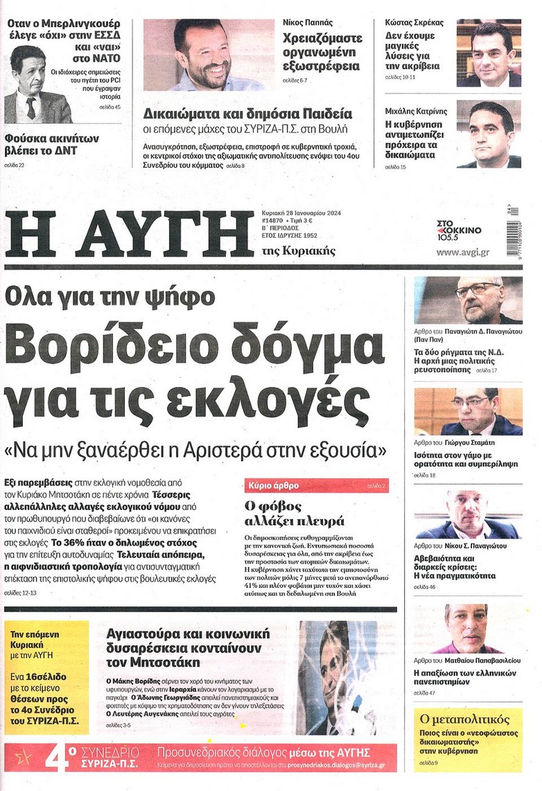 Διαβάστε στο zougla.gr τα πρωτοσέλιδα και τα οπισθόφυλλα των κυριακάτικων εφημερίδων.