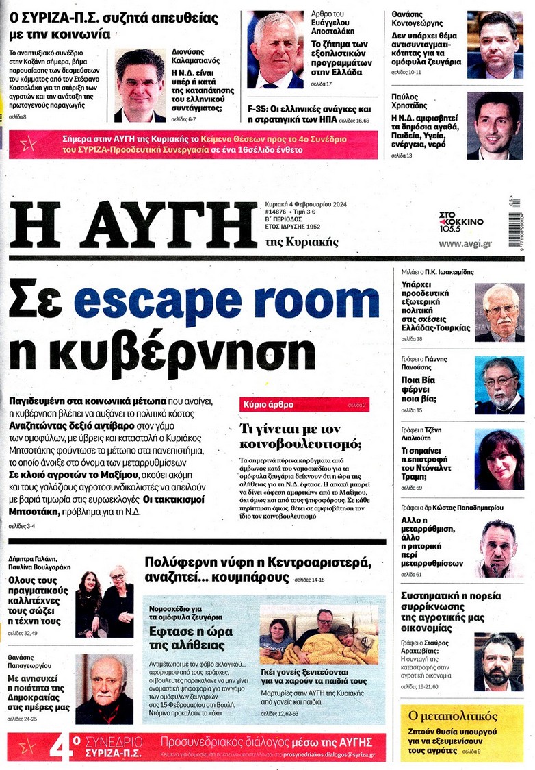 Διαβάστε στο zougla.gr τα πρωτοσέλιδα και τα οπισθόφυλλα των κυριακάτικων εφημερίδων.