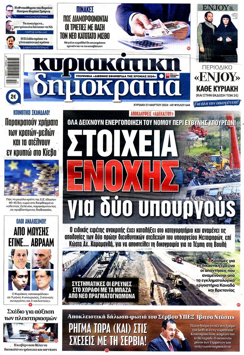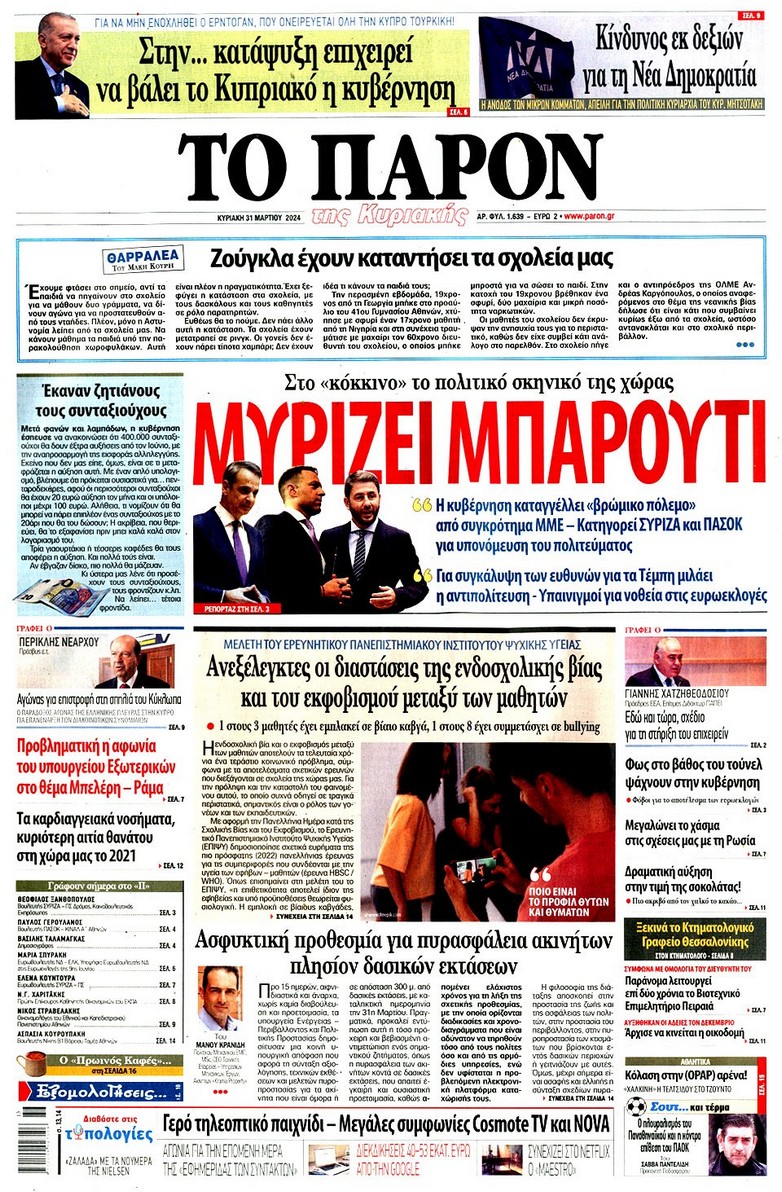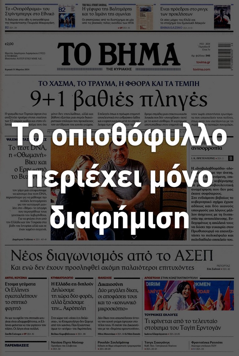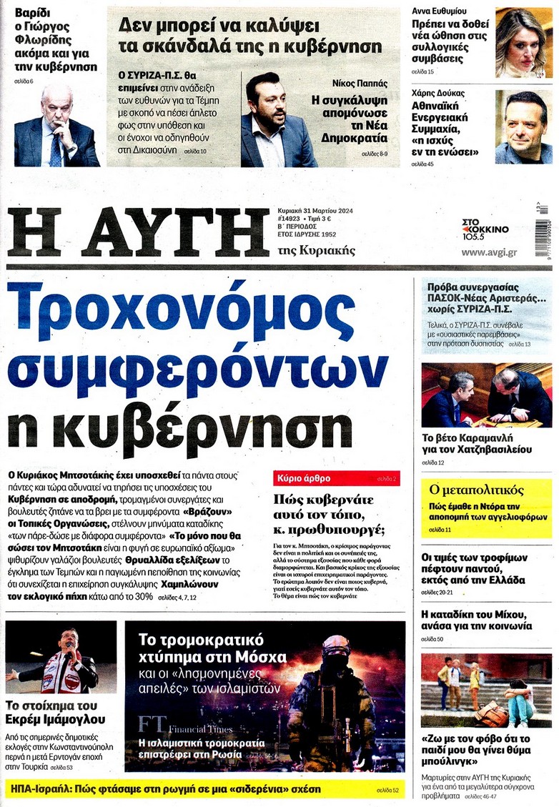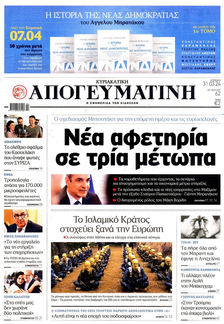 Διαβάστε στο zougla.gr τα πρωτοσέλιδα και τα οπισθόφυλλα των κυριακάτικων εφημερίδων.