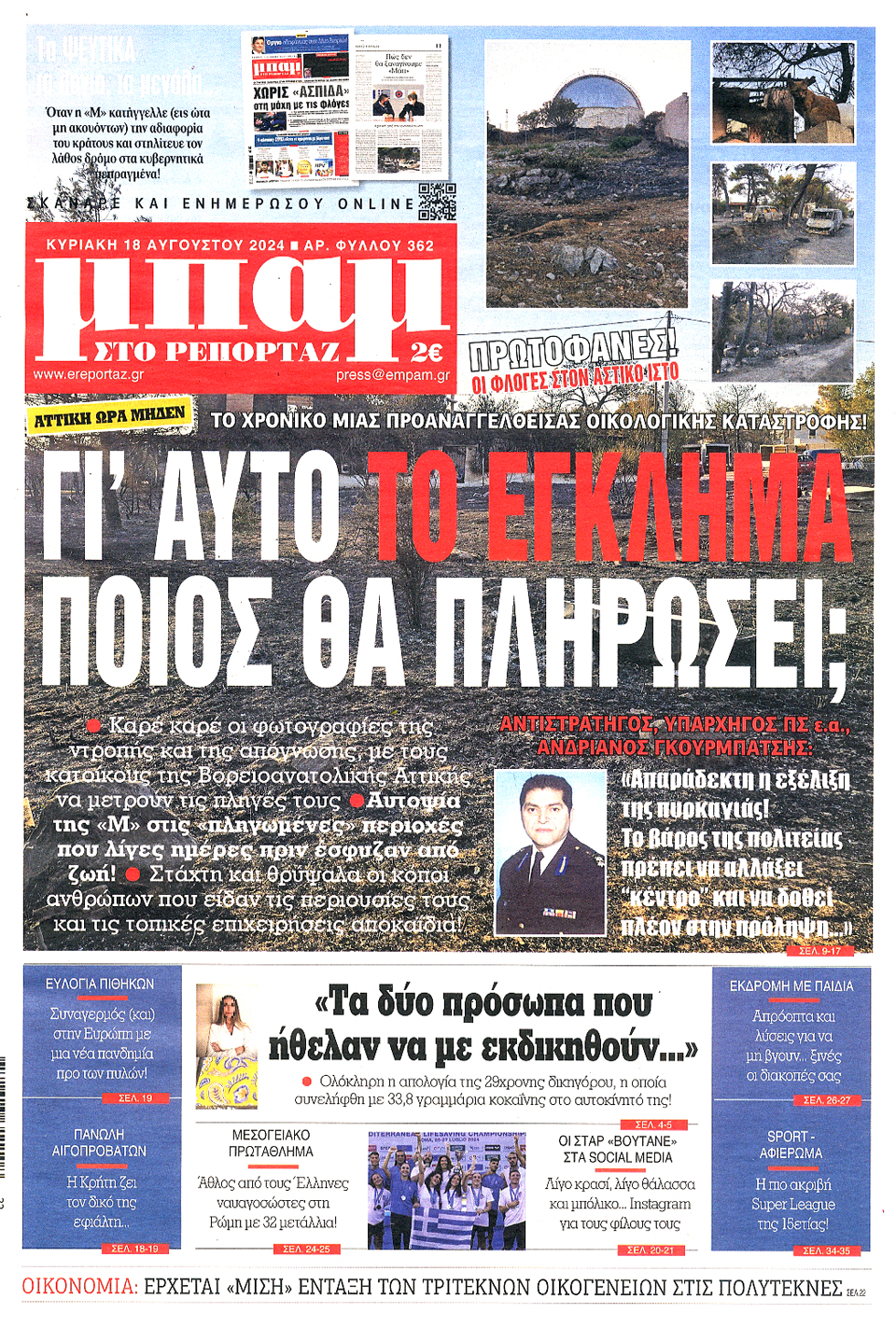 Media Τα πρωτοσέλιδα και τα οπισθόφυλλα των κυριακάτικων εφημερίδων Διαβάστε στο zougla.gr τα πρωτοσέλιδα και τα οπισθόφυλλα των κυριακάτικων εφημερίδων… Εβελίνα Δαβάκη 17.08.2024 | 16:11 UPD:18.08.2024, 16:05 Διαβάστε στο zougla.gr τα πρωτοσέλιδα και τα οπισθόφυλλα των κυριακάτικων εφημερίδων. H Καθημερινή Documento Απογευματινή Κυριακάτικη Δημοκρατία Μακεδονία της Κυριακής Πρώτο Θέμα Το Βήμα της Κυριακής Real News Το Παρόν της Κυριακής Κυριακάτικη ΚONTRA Ελεύθερος Τύπος της Κυριακής ΜΠΑΜ στο ΡΕΠΟΡΤΑΖ ΔΙΑΒΑΣΤΕ ΠΕΡΙΣΣΟΤΕΡΑ: #εφημερίδες #πρωτοσέλιδα