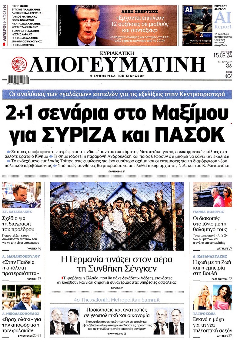 Διαβάστε στο zougla.gr τα πρωτοσέλιδα και τα οπισθόφυλλα των κυριακάτικων εφημερίδων.