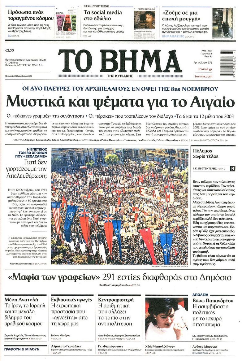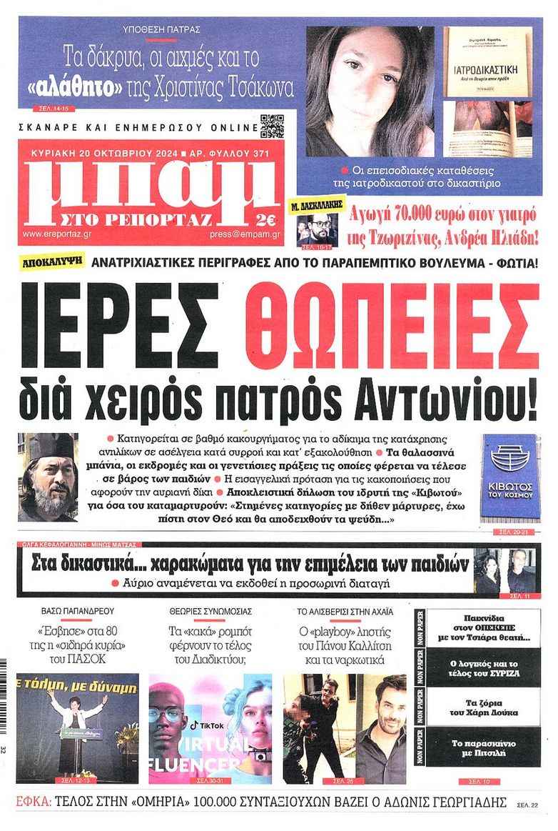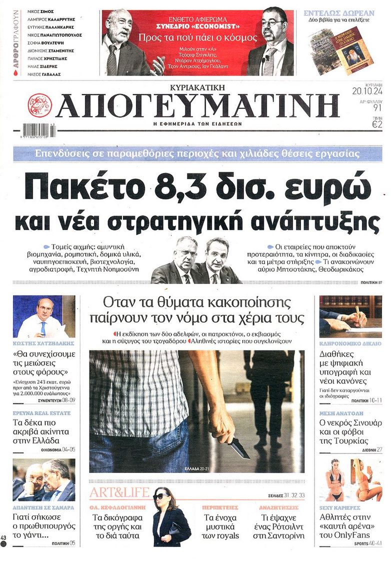 Διαβάστε στο zougla.gr τα πρωτοσέλιδα και τα οπισθόφυλλα των κυριακάτικων εφημερίδων.