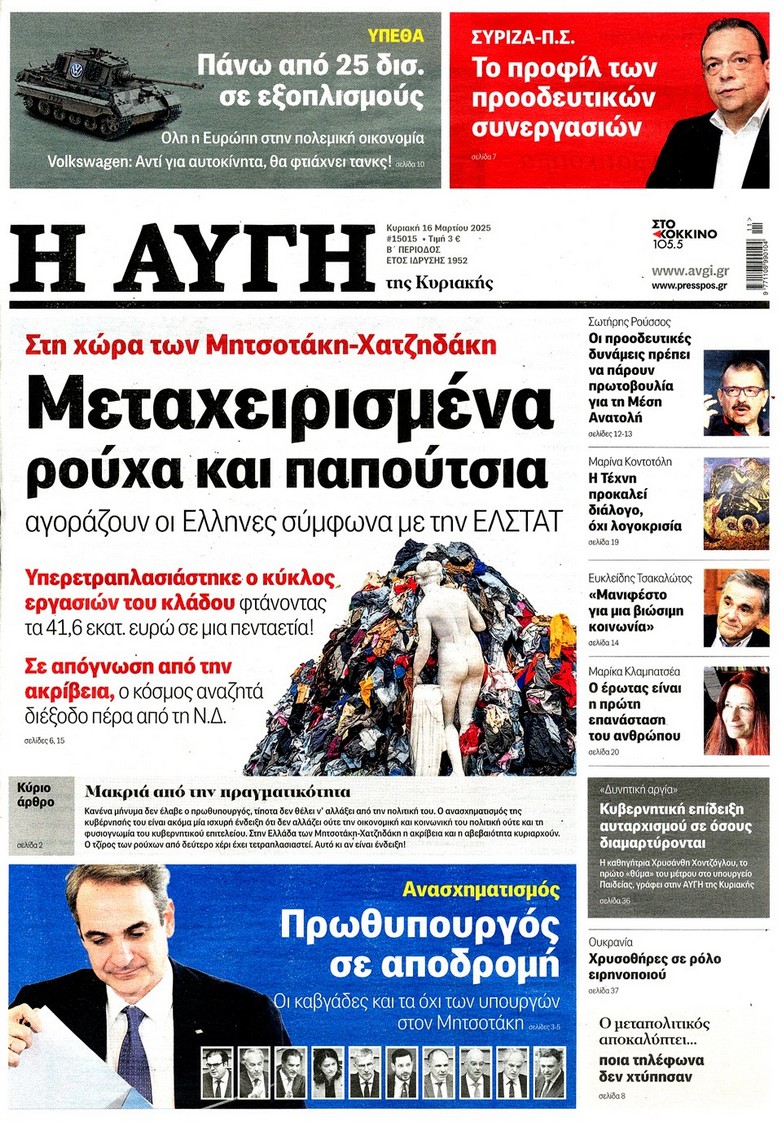 Διαβάστε στο zougla.gr τα πρωτοσέλιδα και τα οπισθόφυλλα των κυριακάτικων εφημερίδων…