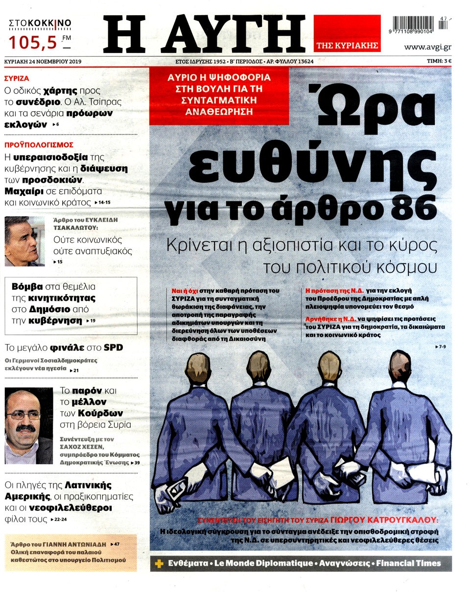 Διαβάστε στο zougla.gr τα πρωτοσέλιδα και τα οπισθόφυλλα των εφημερίδων της Κυριακής.