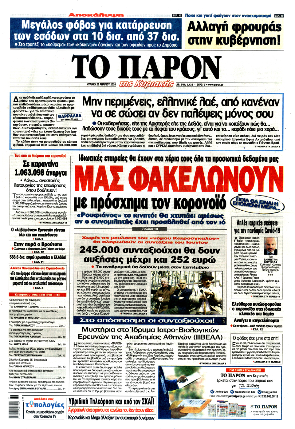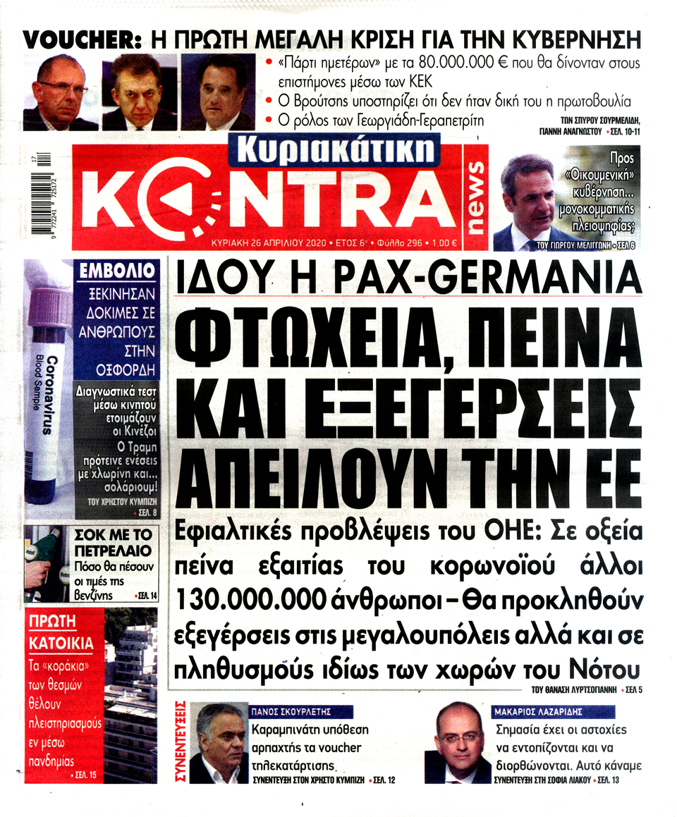 Διαβάστε στο zougla.gr τα πρωτοσέλιδα και τα οπισθόφυλλα των εφημερίδων της Κυριακής.