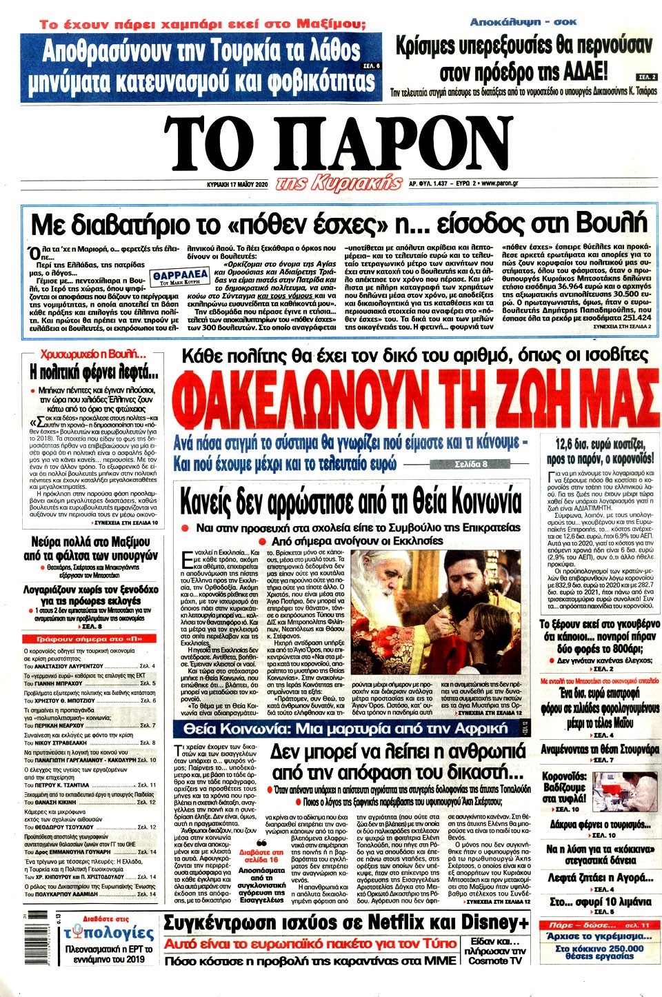 Διαβάστε στο zougla.gr τα πρωτοσέλιδα και τα οπισθόφυλλα των εφημερίδων της Κυριακής.