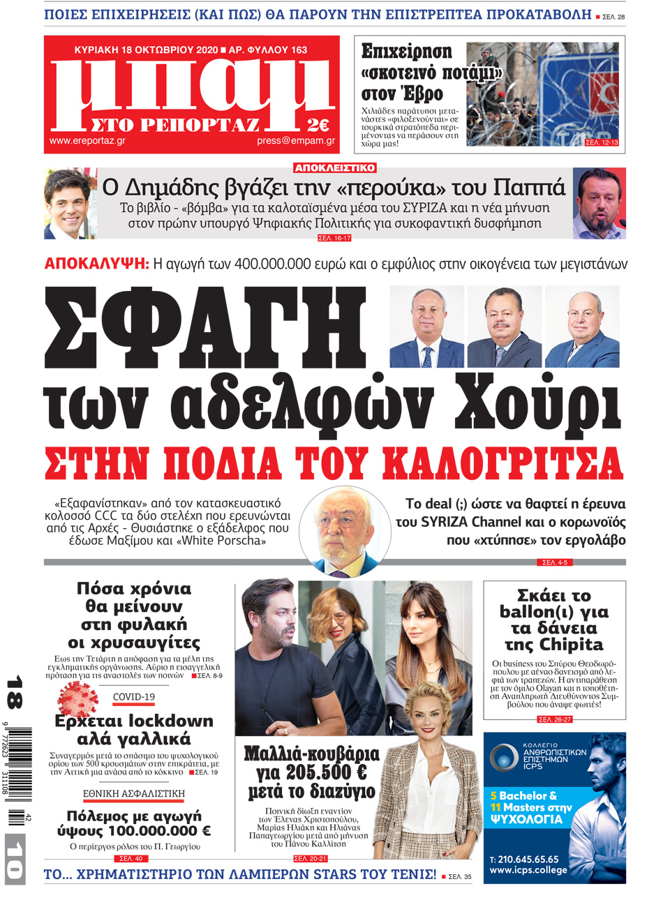 Διαβάστε στο zougla.gr τα πρωτοσέλιδα και τα οπισθόφυλλα των εφημερίδων της Κυριακής.